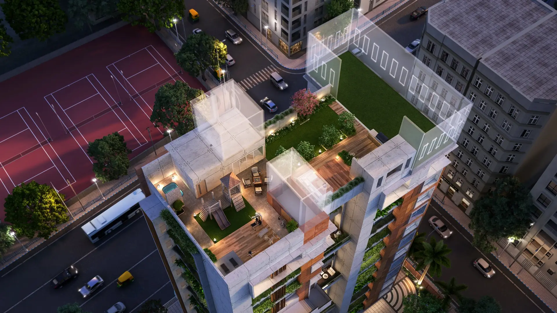 Hungerford House, observed for its exclusivity and privacy, boasts of a beautifully designed, landscaped rooftop, pampered with amenities like no other. With only 11 families residing in this four sides open, spacious building, each family occupies one floor. Enjoy privacy in this primely located, purely residential project, with easy access to the world around you.